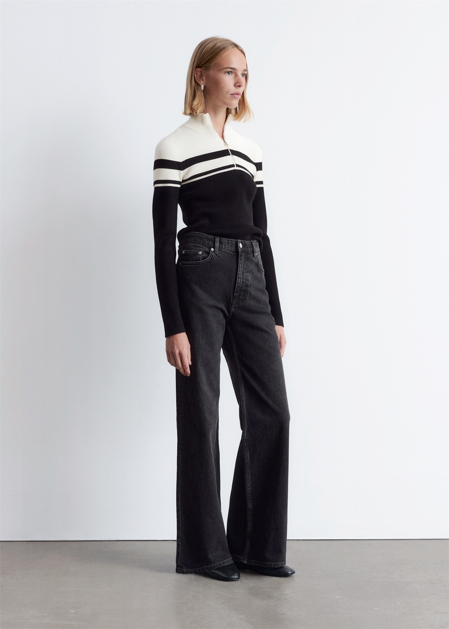 Джинсы с высокой талией, длинными широкими штанинами и классической джинсовой отделкой с 5 карманами. • Regular fit • High waist • Wide legs • Comfort stretch • Ширинка на молнии и пуговице Длина по линии бедра: 80 см / 31,4 дюйма (EU 38 / UK 10 / US 6)