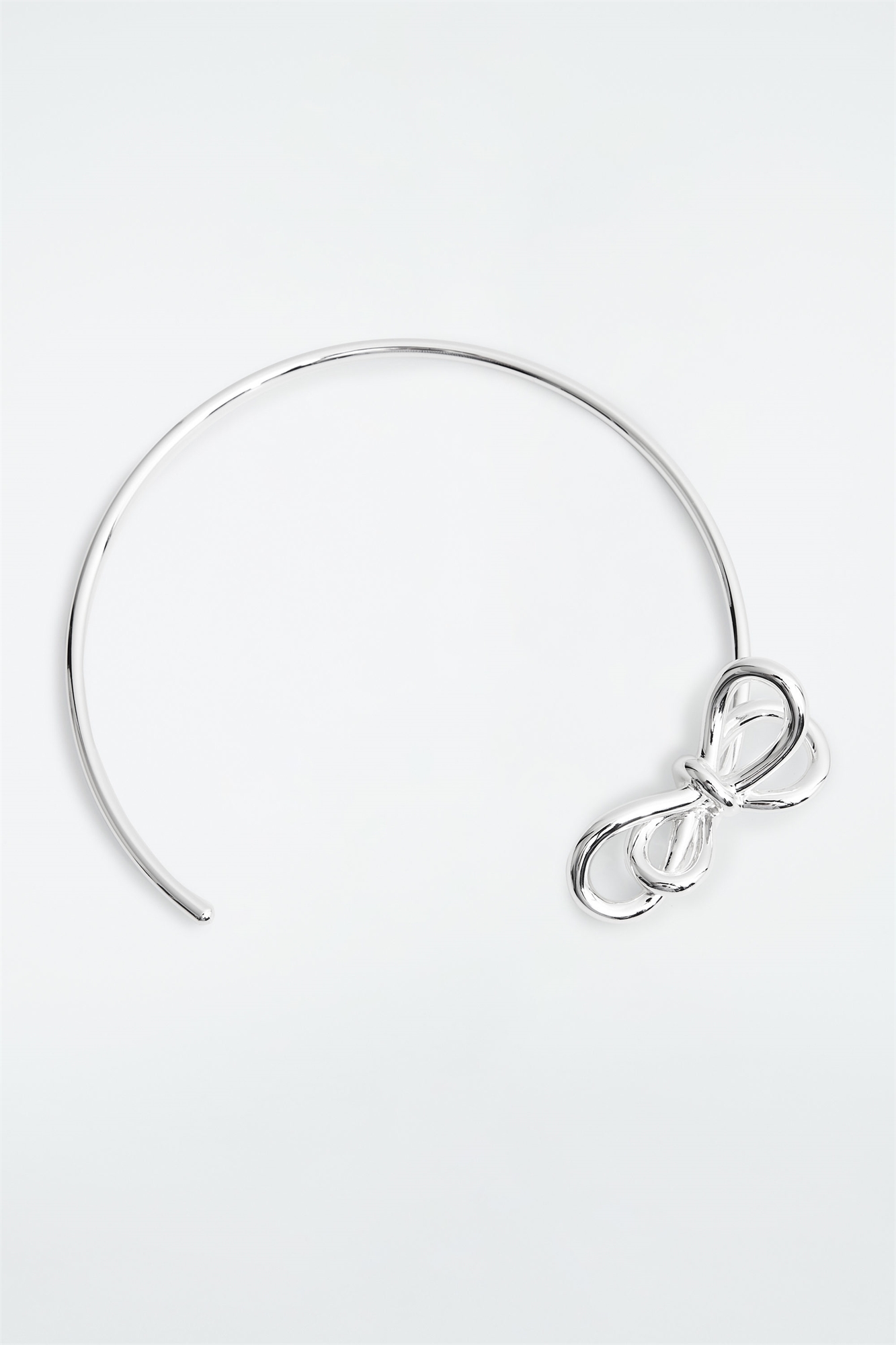 Этот изысканный чокер изготовлен из посеребренной переработанной латуни и завязан в скульптурный двойной бант. Он предназначен для ношения на ключицах и будет утонченно смотреться с вечерними нарядами. Латунь - универсальный материал, который может быть переработан множество раз без потери своих свойств Материал: 100% переработанная латунь. Покрытие: 100% серебро. Без учета отделки Диаметр: 12,5 см
