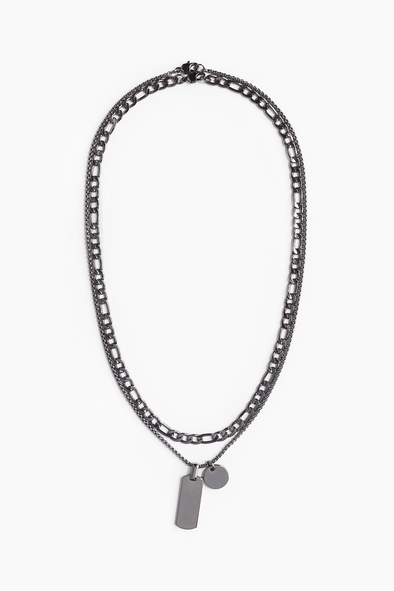 Ожерелья из металлических цепочек разного дизайна с застежкой-триггером. На одной цепочке две подвески.