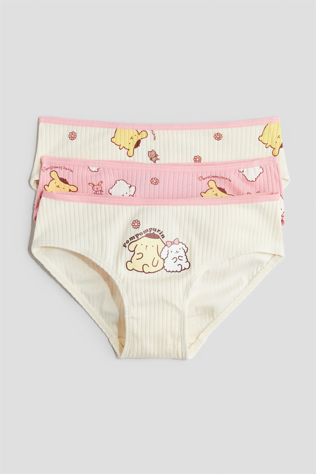 H&M x Hello Kitty and Friends. Веселая и яркая коллекция с уютными фасонами, милыми принтами и игривыми аксессуарами. Откройте для себя мир Hello Kitty и всех наших пушистых любимцев! Трусы из ребристого хлопкового джерси с набивным рисунком и ластовицей.