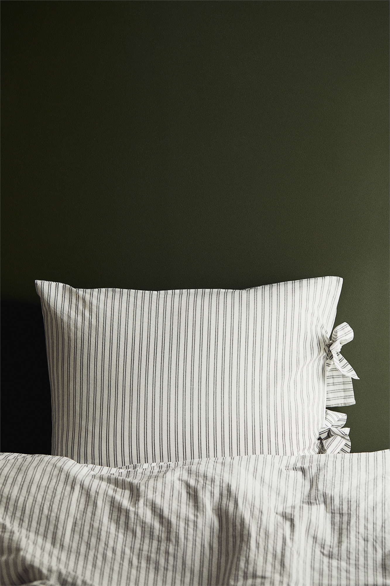 Комплект постельного белья из мягкого хлопкового полотна с наволочкой с отверстием в виде конверта, завязывающейся элегантной лентой с бантом.