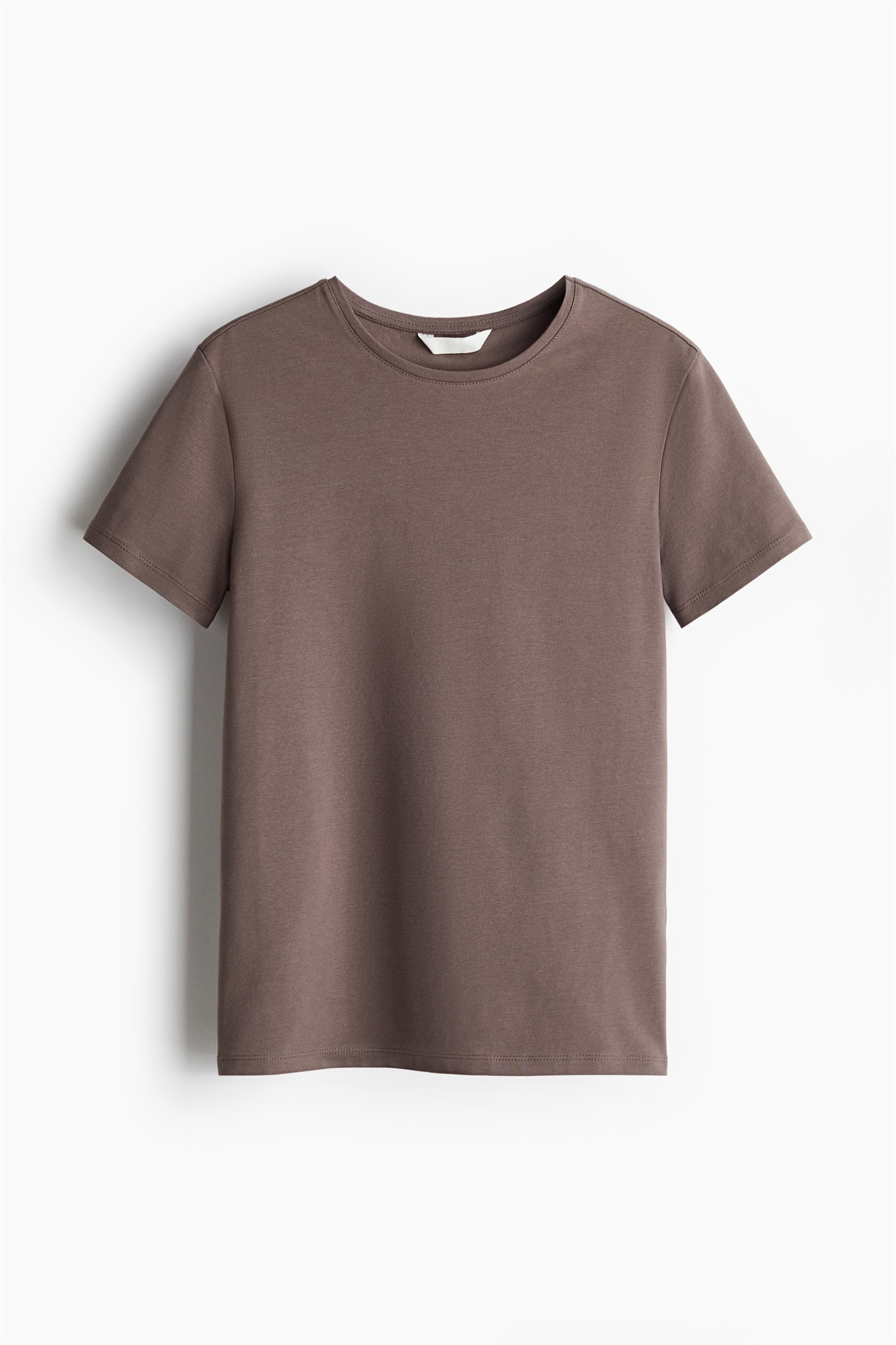 Облегающая футболка из хлопкового джерси-стрейч с узкой окантовкой по вырезу горловины и прямым покроем.