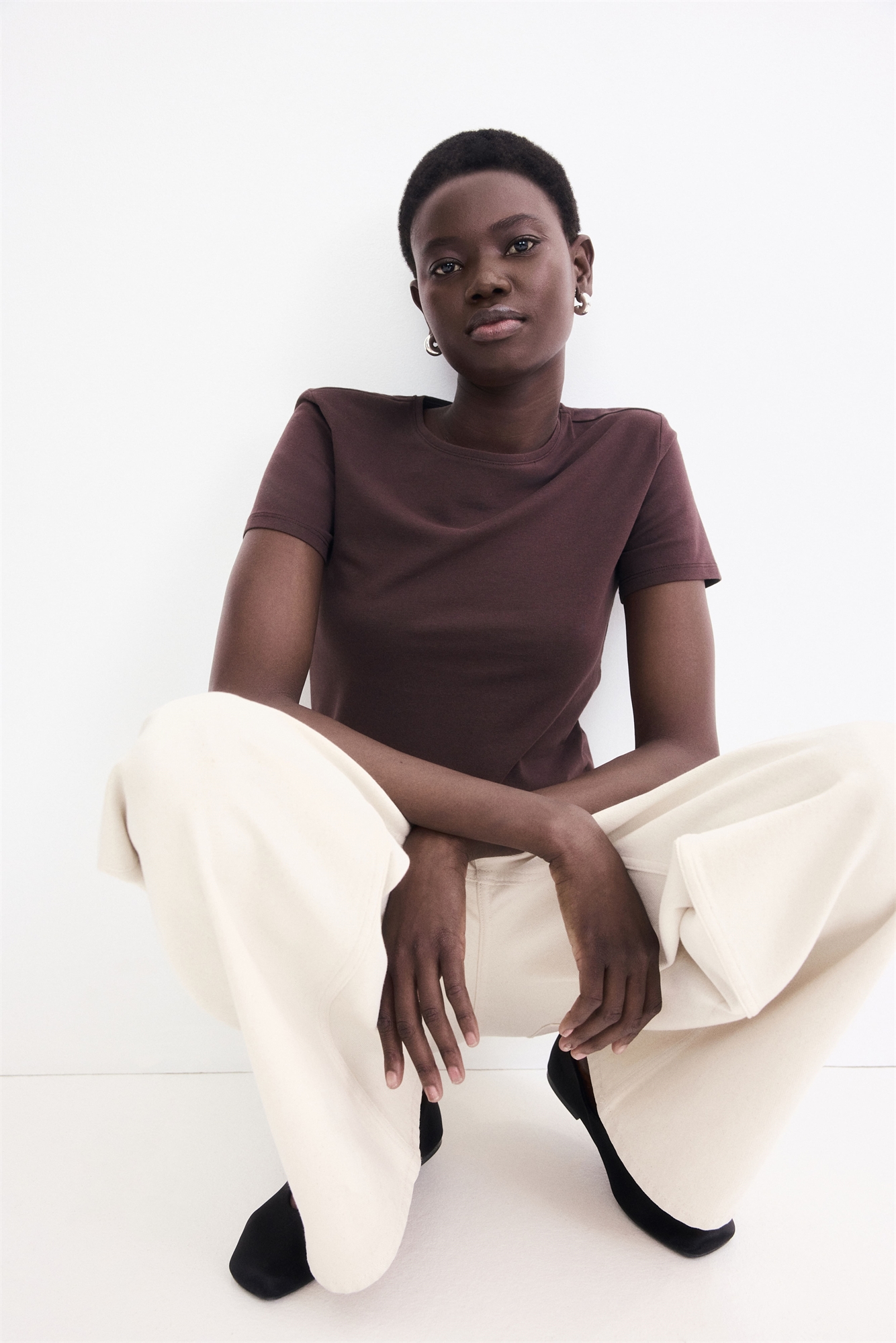Облегающая футболка из хлопкового джерси-стрейч с узкой окантовкой по вырезу горловины и прямым покроем.
