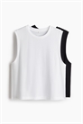 Обрезанные спортивные жилеты в стиле бокс из функциональной ткани с добавлением DryMove™, которая отводит влагу от кожи, обеспечивая комфортную сухость во время движения. Свободный крой с круглым вырезом, чуть более глубокими проймами и прямым покроем.