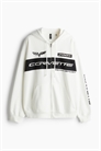 Толстовка на молнии больших размеров из принтованной толстовочной ткани с мягким начесом внутри. Двухслойный капюшон с завязками, потайная застежка-молния спереди, спущенные плечи и длинные рукава. Передние карманы, манжеты и подол в рубчик.