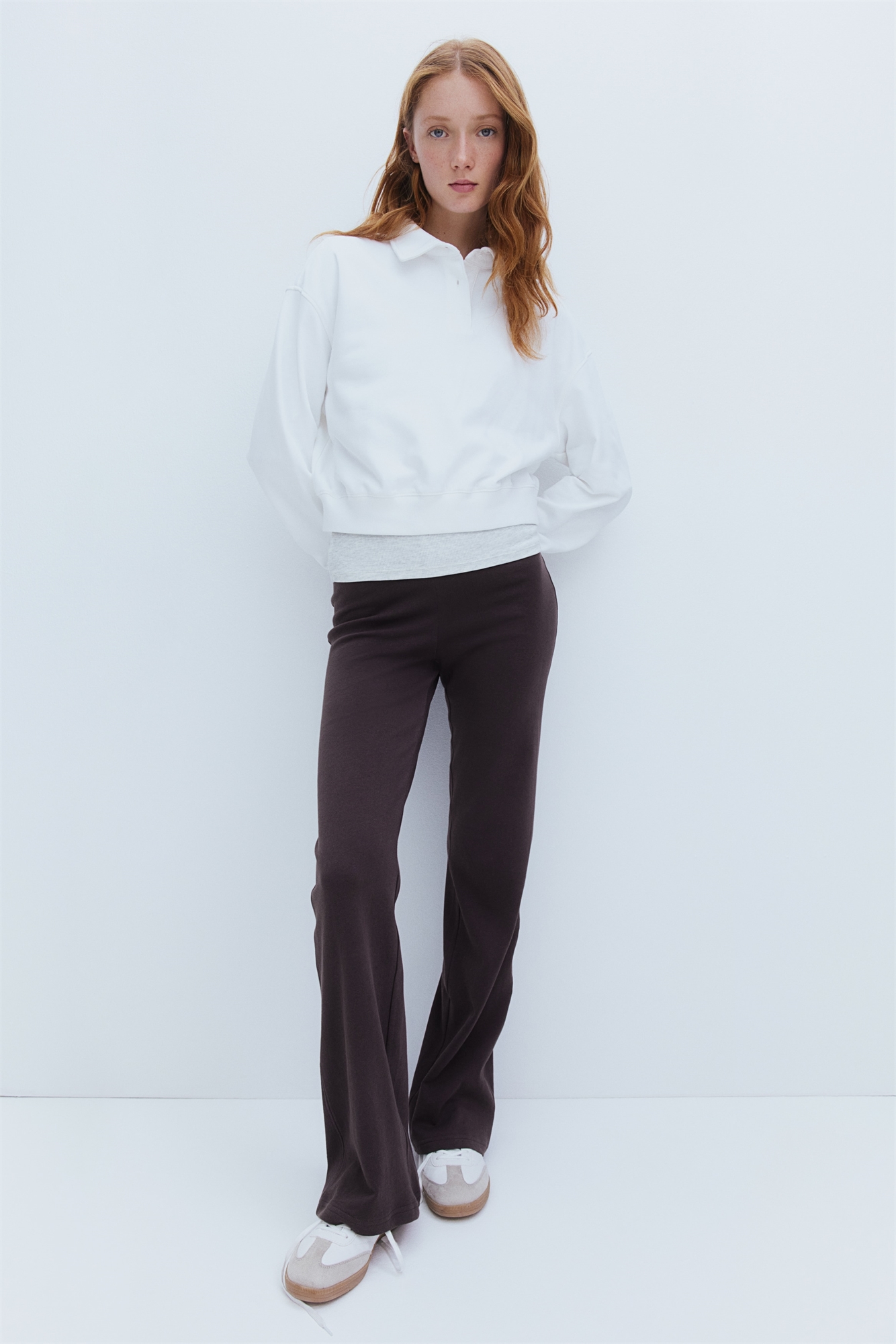 Брюки из легкого хлопкового свитшота с эластичным поясом и расклешенными ногами.