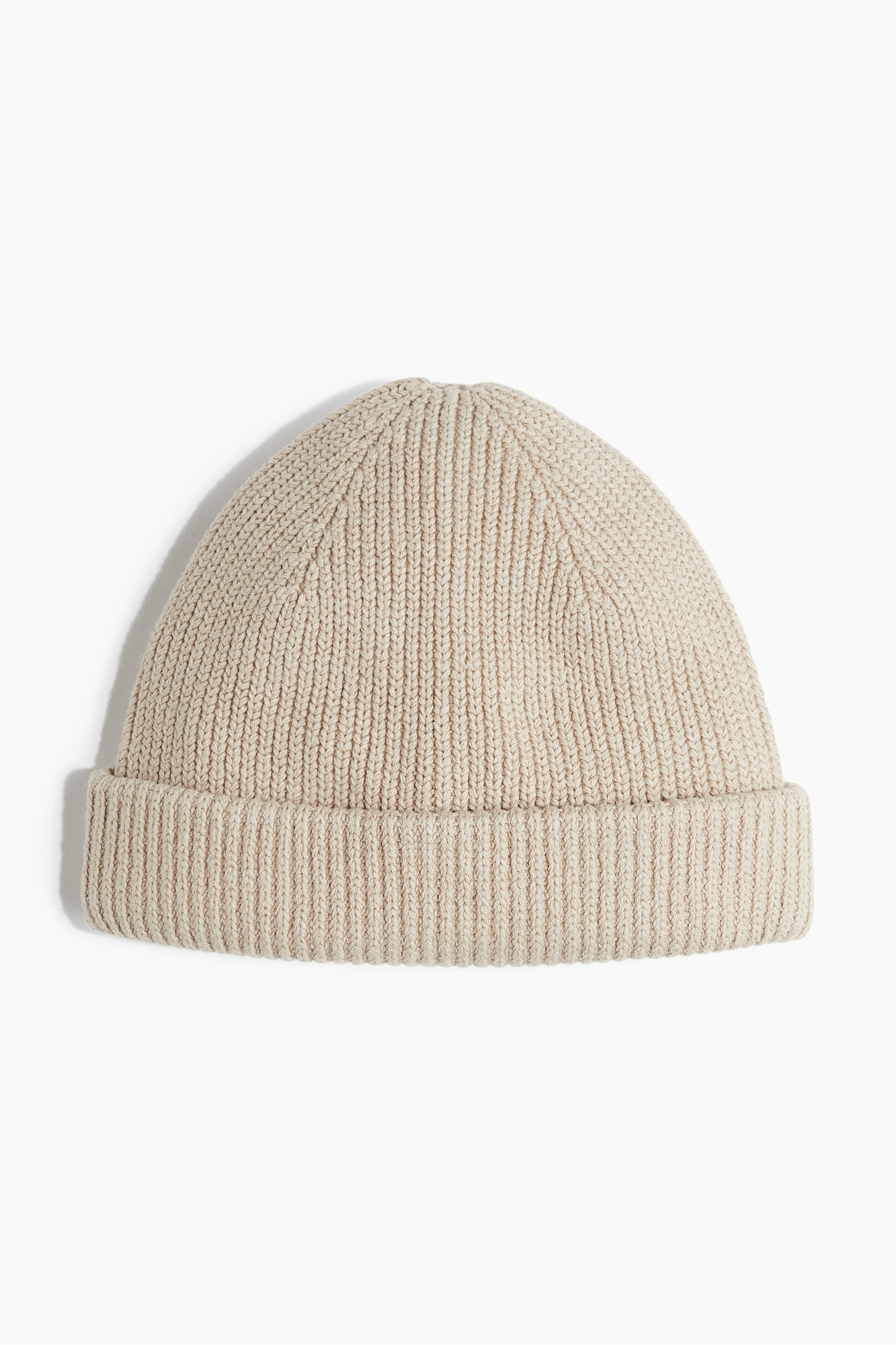 Шапка из мягкого трикотажа в рубчик с широким выворотом на подоле.