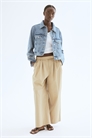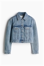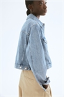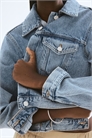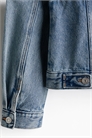 Короткая куртка из прочного хлопкового денима с воротником и металлическими пуговицами спереди. Длинные рукава с манжетами на пуговицах, накладные нагрудные карманы на пуговице и регулируемые вкладки с пуговицами сзади на подоле.