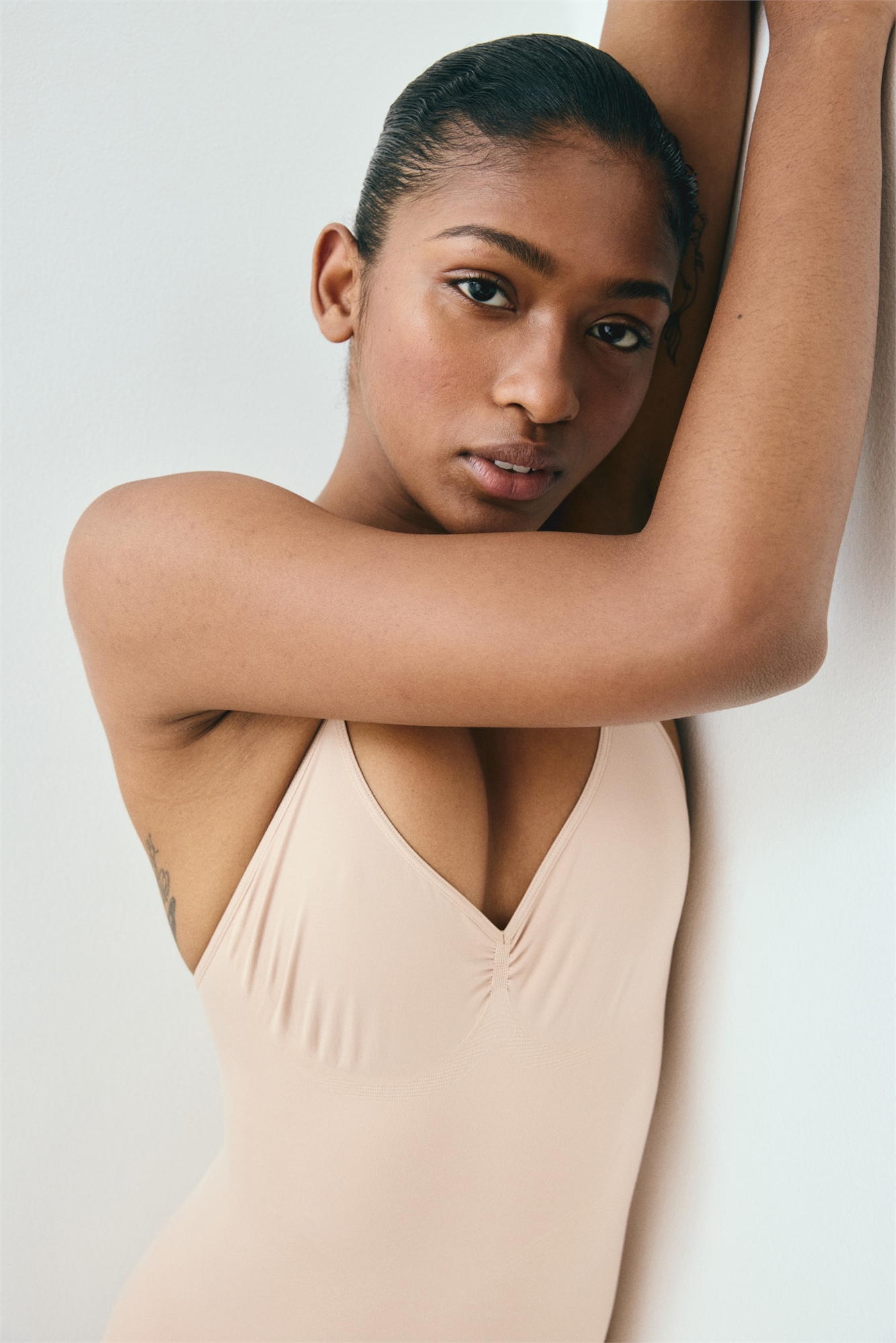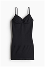 Короткая комбинация с утягивающим эффектом на талии, бедрах и попе. Регулируемые бретели и чашечки без проводов с цельнокроеной деталью для увеличения бюста и средней поддержки. Слип сконструирован с минимальным количеством швов для бесшовного, комфортного ощущения на коже.