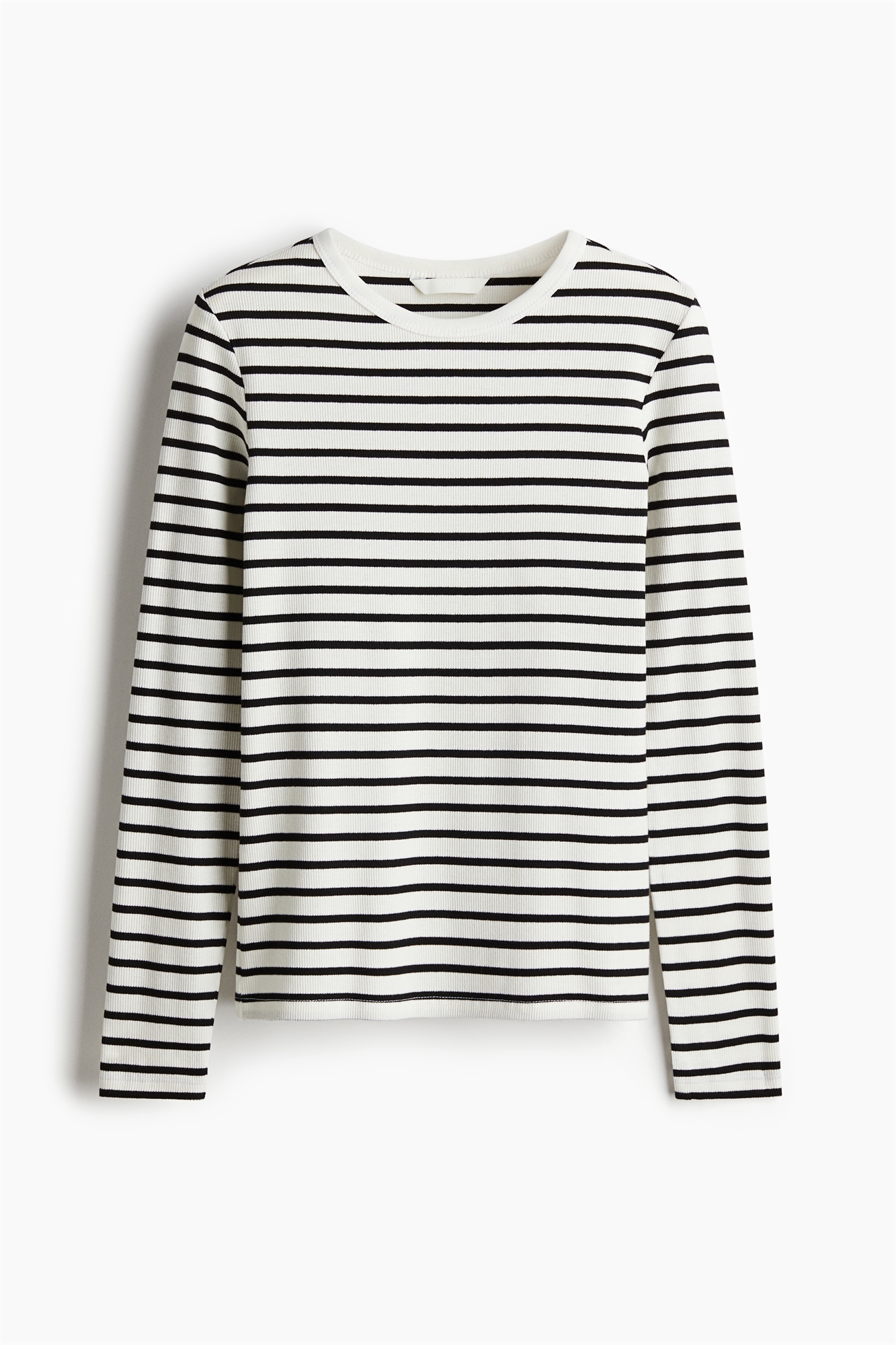 Облегающий топ из ребристого хлопкового джерси с круглым вырезом и длинными рукавами.