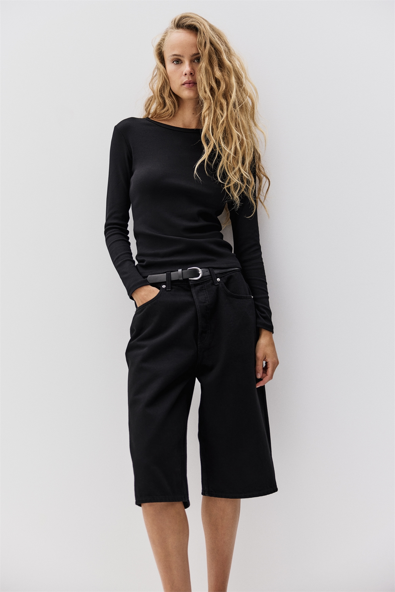 Облегающий топ из ребристого хлопкового джерси с круглым вырезом и длинными рукавами.