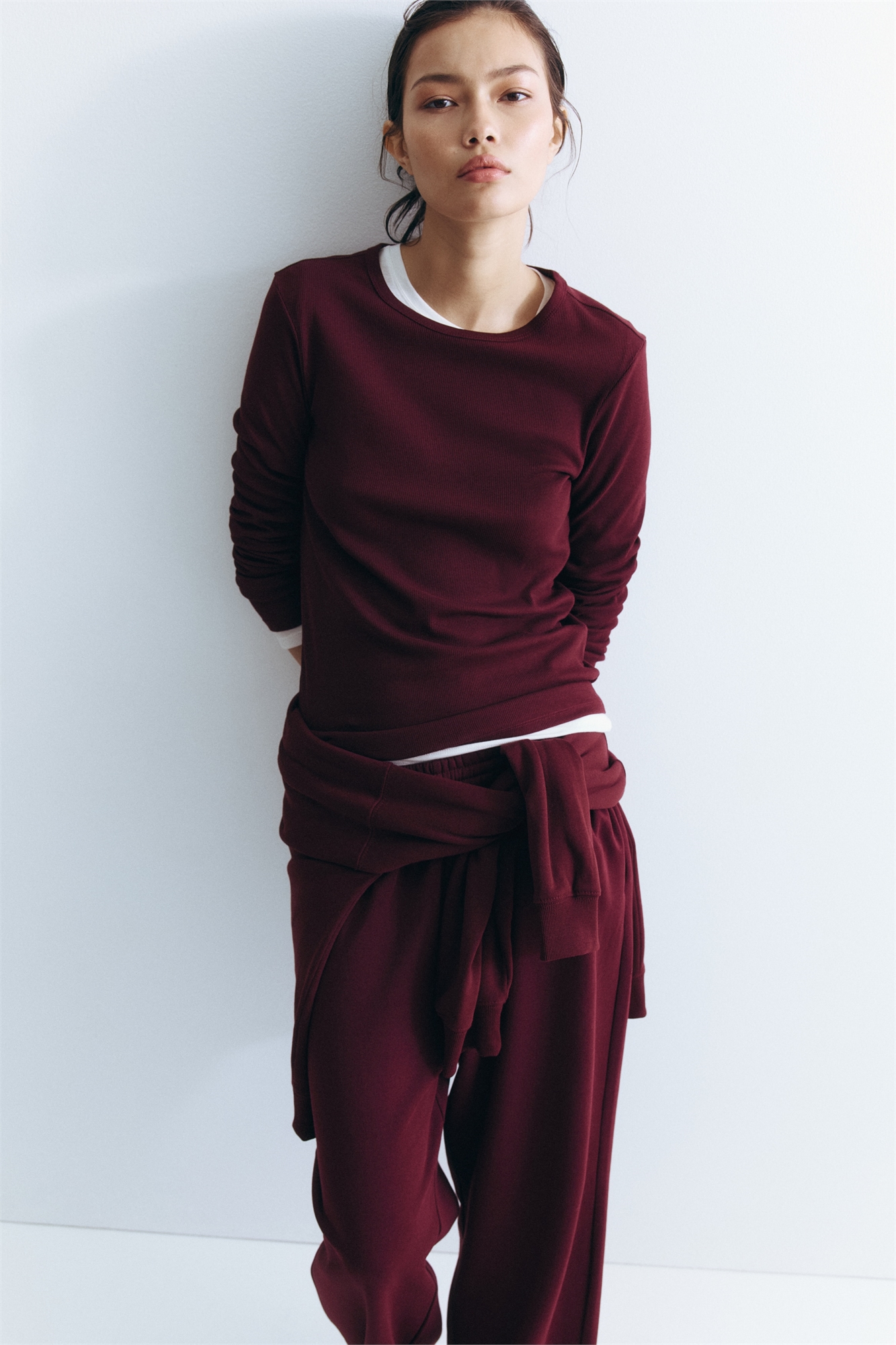 Облегающий топ из ребристого хлопкового джерси с круглым вырезом и длинными рукавами.