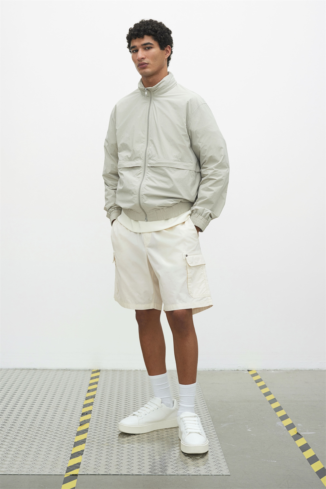 Шорты-карго из хлопкового поплина с эластичным поясом с завязками, фальшивой ширинкой, диагональными боковыми карманами и задними и ножными карманами с клапаном и кнопками. Небольшой разрез сбоку на подоле. Свободный крой для непринужденного, но не чрезмерного силуэта.
