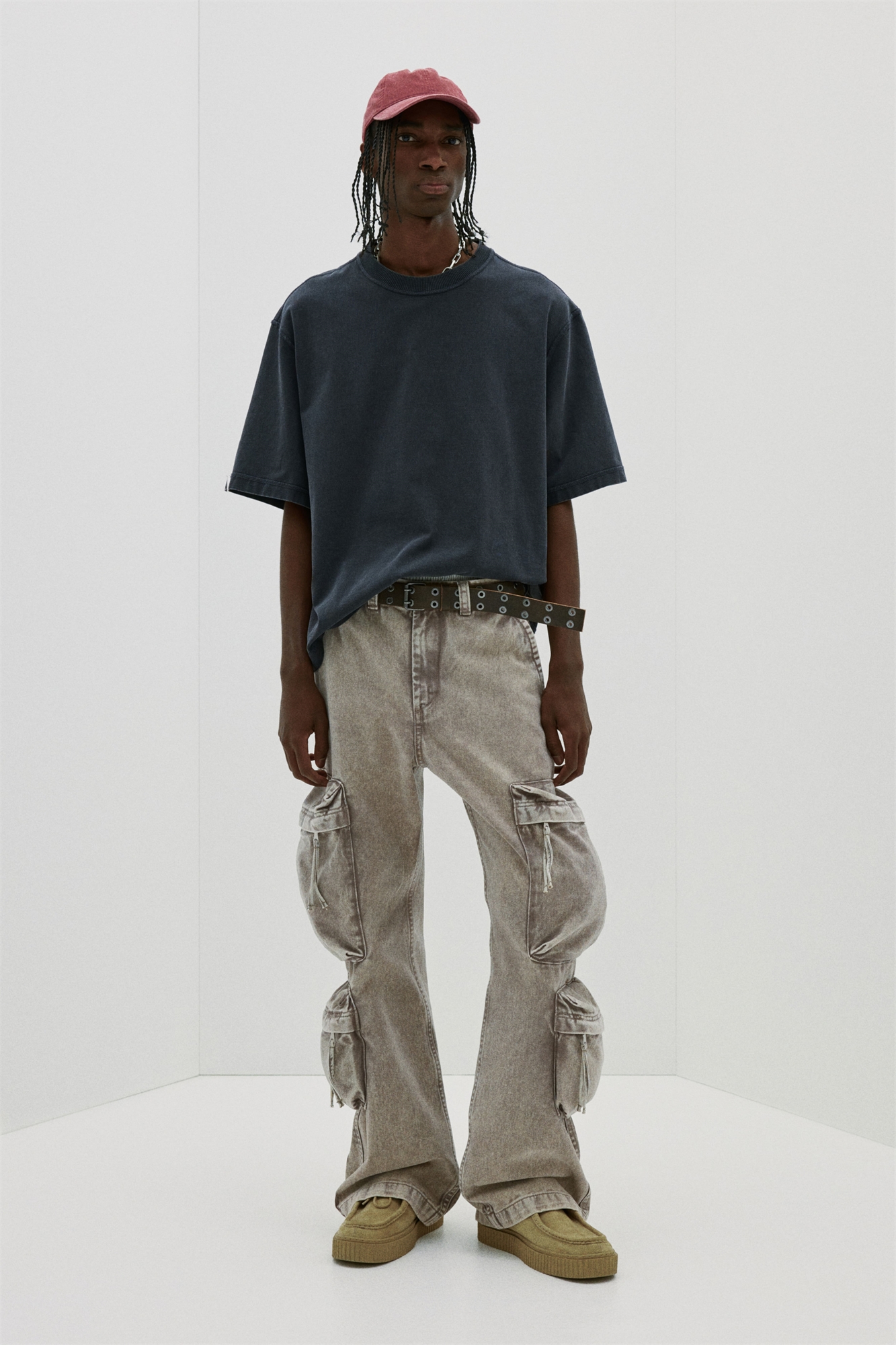 Брюки-карго из хлопковой саржи с ширинкой на молнии и пуговице, диагональными боковыми карманами и накладными задними карманами. Расклешенные ноги с четырьмя накладными карманами на молнии. Регулярный крой для комфортной носки.