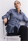 Рубашка из мягкой блестящей саржи с воротником, пуговицами спереди и деталью в виде галстука под бюстом. Длинные рукава с втачным рукавом и манжетами на пуговицах. Закругленный подол. Рубашку можно носить как во время, так и после беременности.