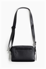 Сумка-кроссбоди из мелованной ткани с двусторонней застежкой-молнией в верхней части и регулируемым плечевым ремнем с металлической пряжкой. Внешнее отделение на молнии и открытое внутреннее отделение. На подкладке. Глубина 8 см. Высота 16 см. Ширина 25 см.
