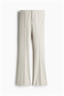 Облегающие брюки из эластичного полотна с ширинкой на молнии и скрытой застежкой на крючок и планку. Ноги со складками спереди и сзади и расклешенными подолами.
