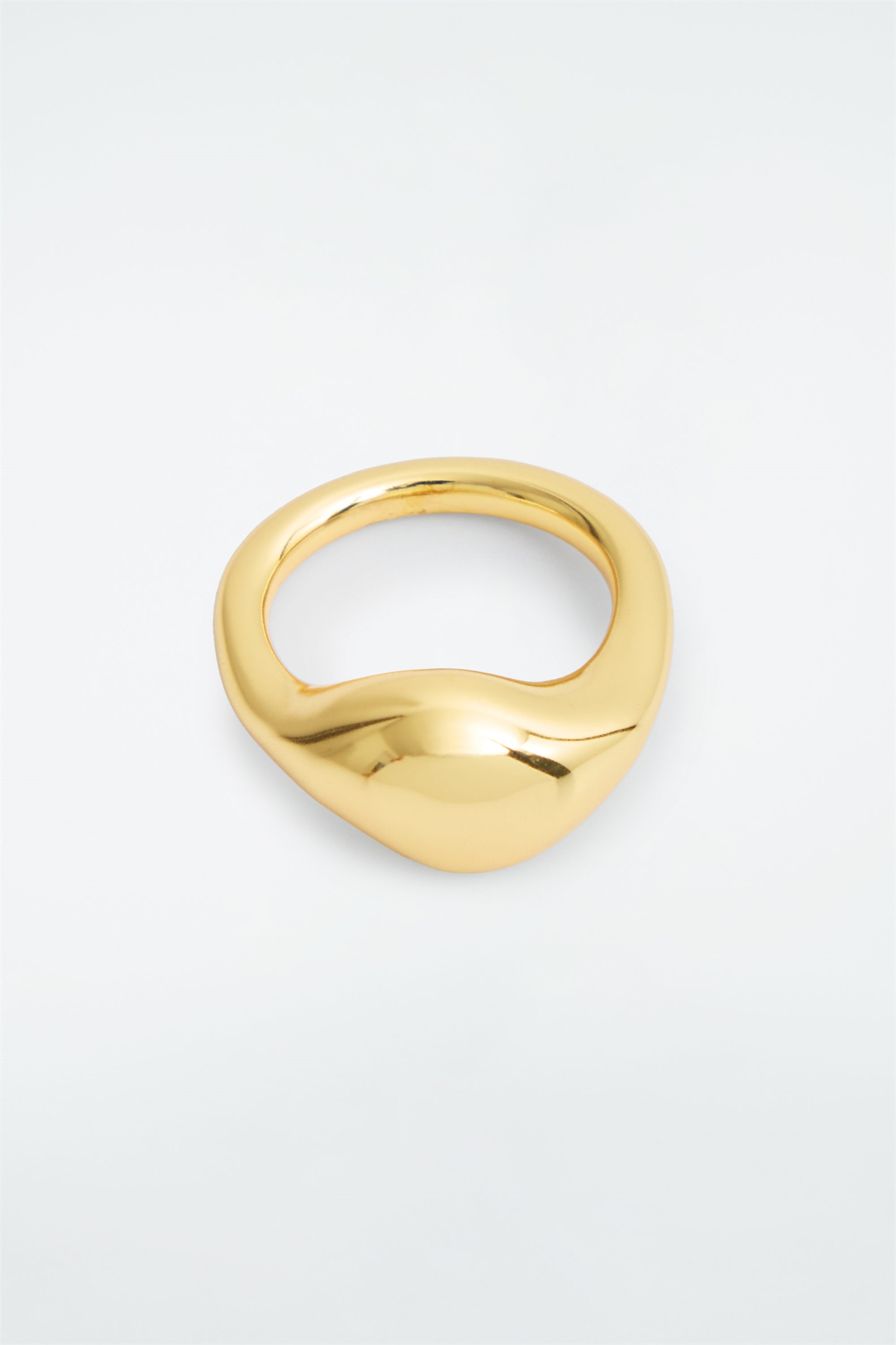 Это привлекательное кольцо для мизинца имеет яркую скульптурную форму капли и блестящее, прочное золотое покрытие. Латунь - универсальный материал, который можно многократно перерабатывать без потери его свойств Верхний материал: 100 % переработанная постпотребительская латунь. Покрытие: 100 % золото. Детали исключены