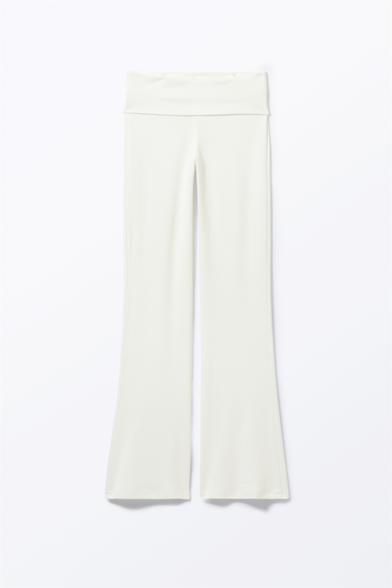 Расклешенные пижамные брюки обычного покроя. Они имеют двухслойный складчатый пояс и расклешенные ноги. Обычный крой. Заниженная талия. Длинная длина. Складчатый пояс. Расклешенные ноги.