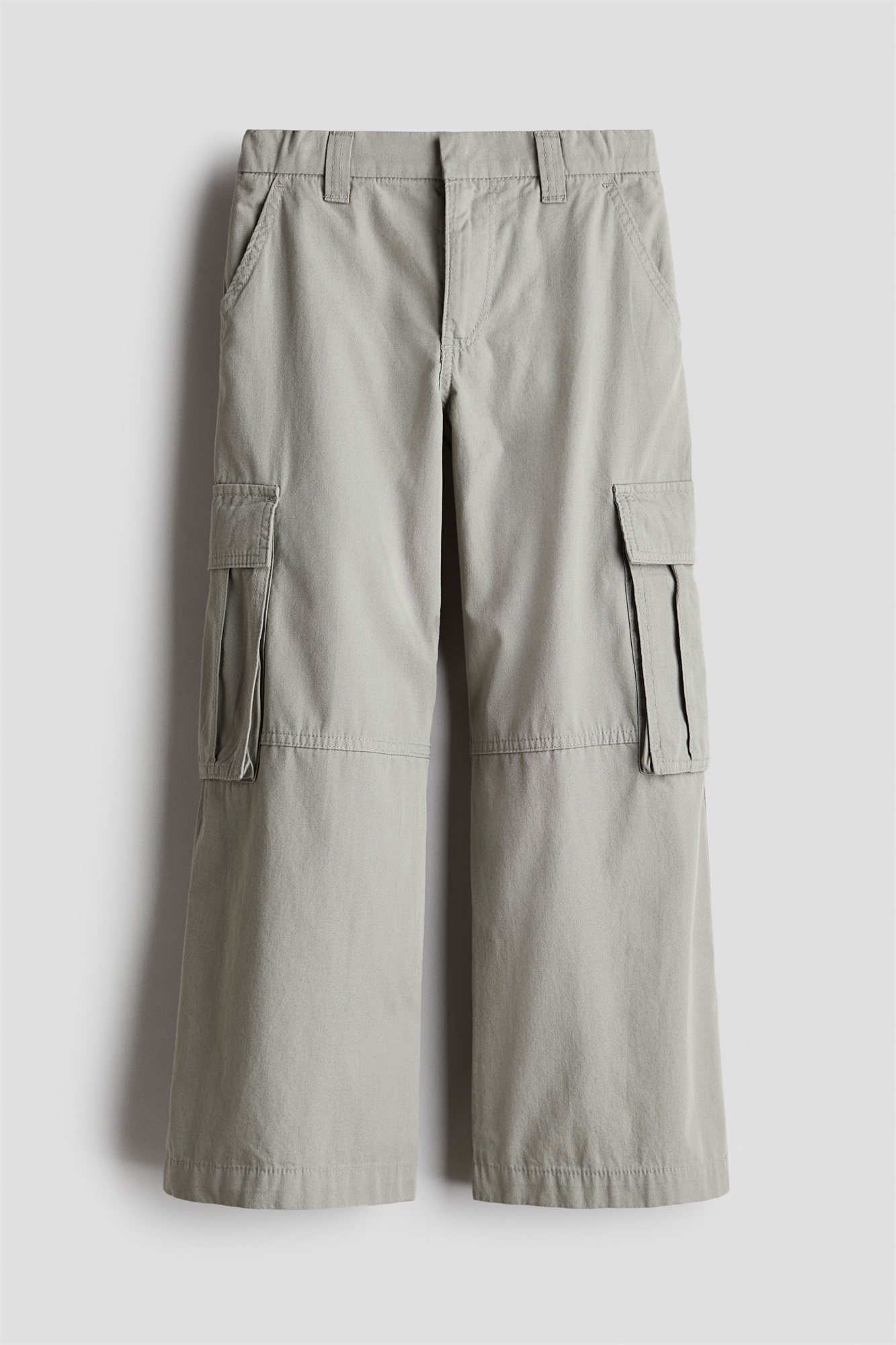 Брюки-карго из мягкого хлопкового полотна с накладными карманами на ногах. Регулируемый эластичный пояс, ширинка на молнии с кнопкой, боковые карманы, накладные задние карманы и широкие штанины.