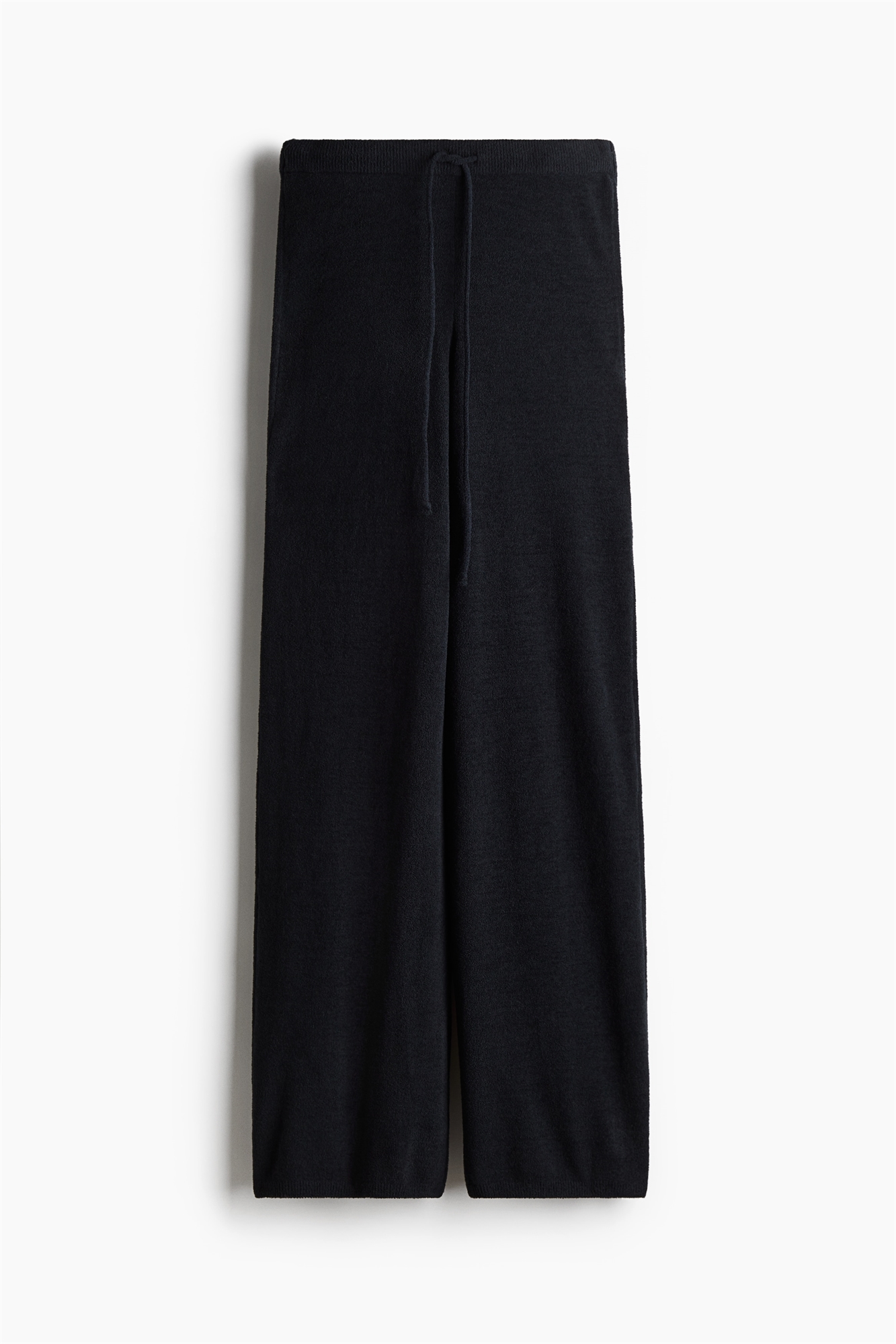 Тонкие брюки из мягкой синельной пряжи с эластичным поясом и прямыми ногами.