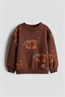 Свободный топ из легкого толстовочного материала с принтом, изготовленный из хлопка, с видимыми швами flatlock. Круглый вырез, спущенные плечи и длинные рукава. Окантовка по вырезу горловины, манжетам и подолу.