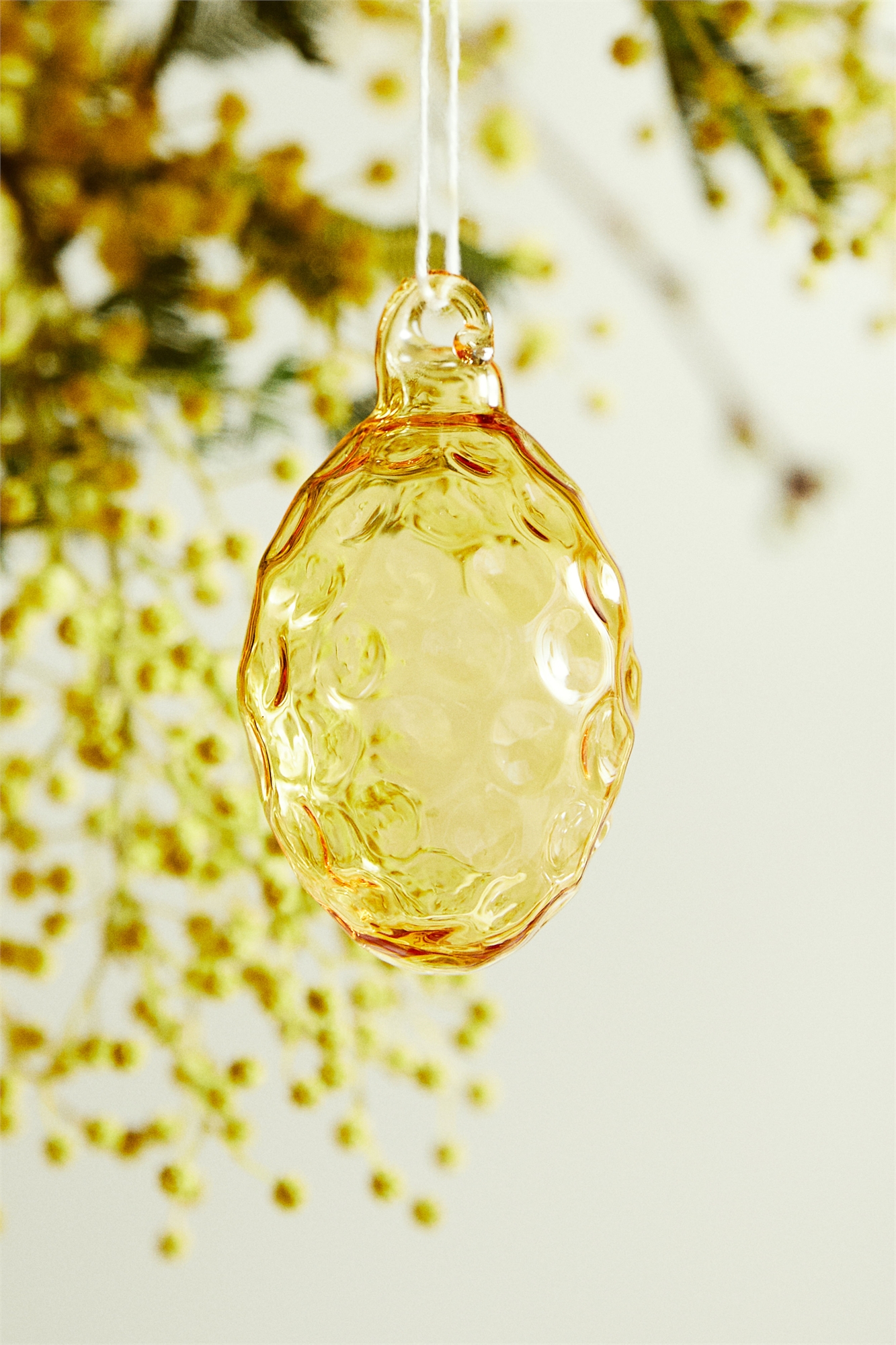 Набор из двух украшений, изготовленных из боросиликатного стекла с пузырчатой текстурой, красиво отражающей свет. В верхней части имеются отверстия для подвешивания. Боросиликатное стекло прочное и термостойкое, без ущерба для стиля и прозрачности. Ширина 3 см. Высота 4,5 см.