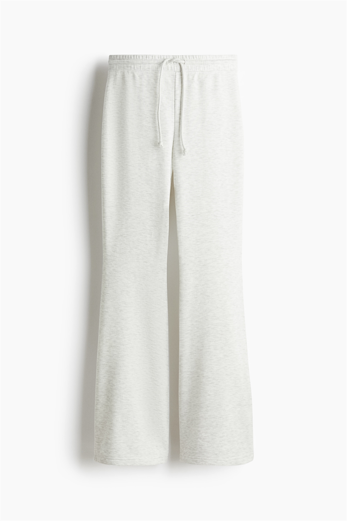 Облегающие джоггеры из толстоватой ткани с заниженной талией, эластичным поясом и утягивающим шнурком. Ноги с расклешенными краями.