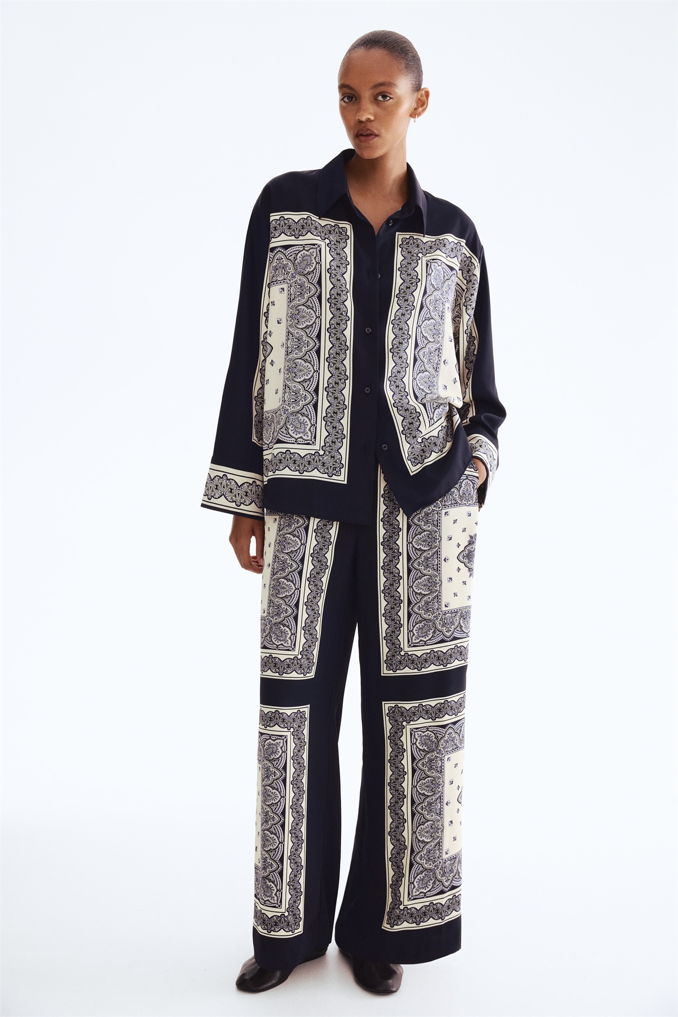 Брюки с прямыми ногами из тканого материала с высокой талией, эластичной резинкой сзади и потайной застежкой на молнию с одной стороны.