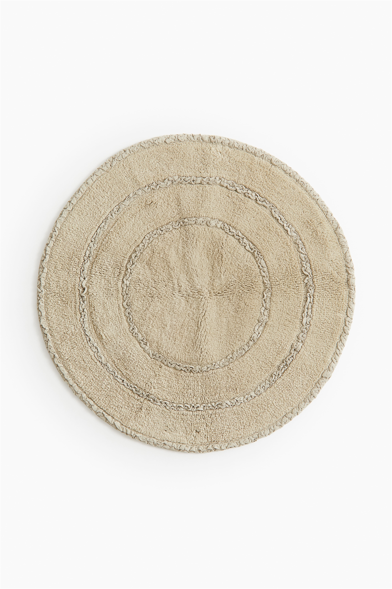 Круглый коврик для ванной из хлопкового полотна с ворсистой лицевой стороной и оборками.