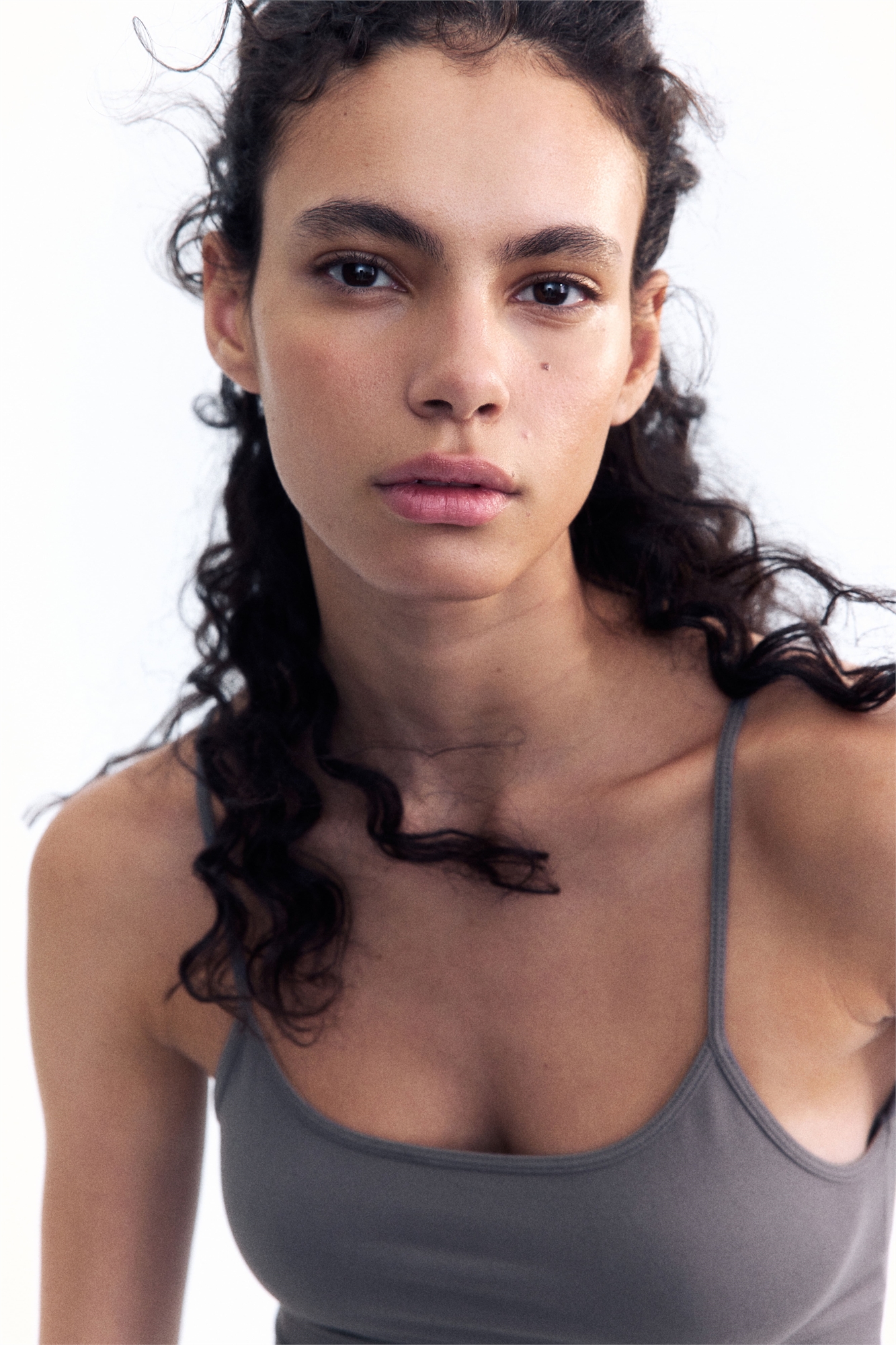 Облегающий короткий топ из эластичного джерси с глубоким круглым вырезом, узкими бретелями и прямым подолом.