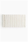Коврик для ванной из хлопка с ворсом и узелками, создающими фактурный рисунок. Бахрома по коротким сторонам и противоскользящие протекторы на обратной стороне.