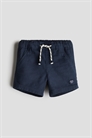 Шорты из мягкой саржи с декоративными карманами спереди и регулируемым эластичным поясом с утягивающим шнурком и фальшивой ширинкой.
