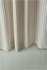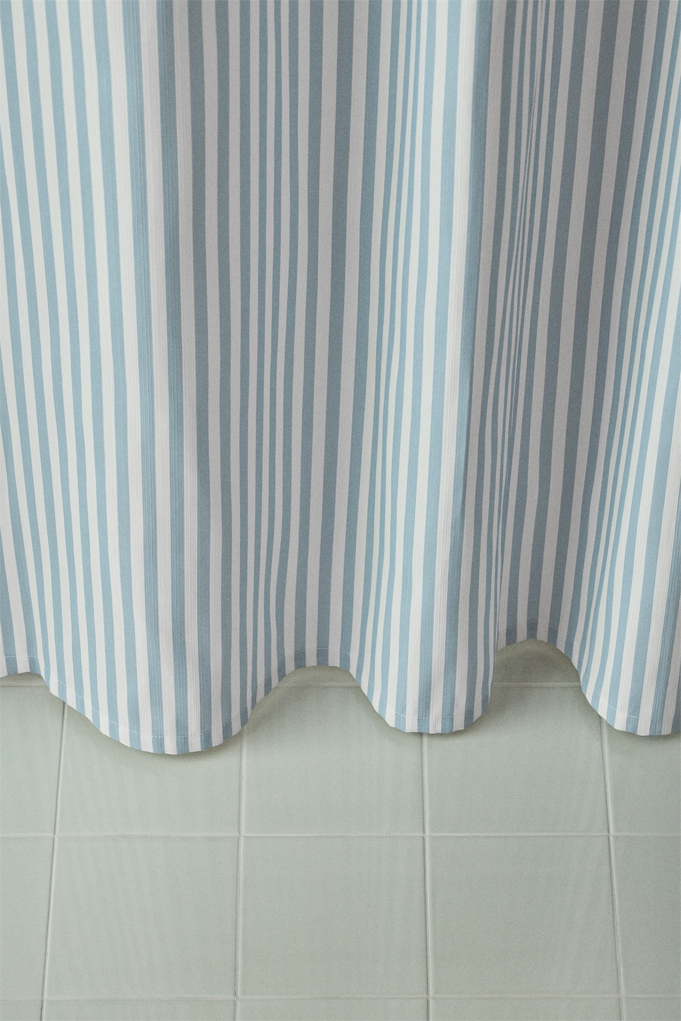 Полосатая занавеска для душа из водоотталкивающего полиэстера с фактурной отделкой. Металлические люверсы в верхней части. Кольца для шторки продаются отдельно.