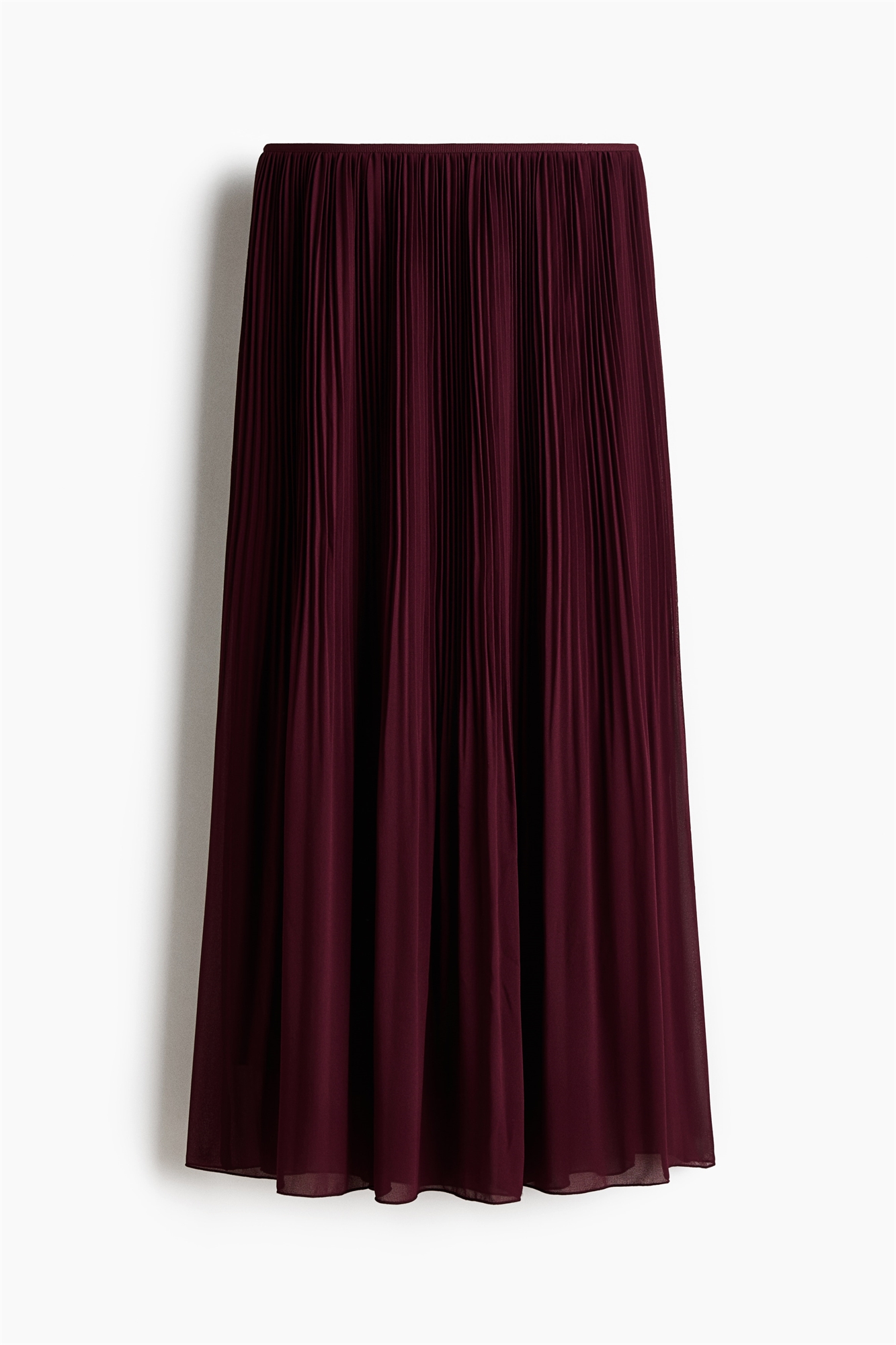 Длинная расклешенная юбка из плиссированного шифона с высокой талией, узкой эластичной резинкой и подолом, обработанным оверлоком. На подкладке.