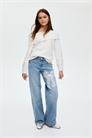 Джинсы с 5 карманами из хлопкового денима с выстиранным рисунком и съемной деталью в виде цепочки. Заниженная талия с регулируемой резинкой и ширинка на молнии с пуговицей. Свободный крой по бедрам, ляжкам и штанинам.