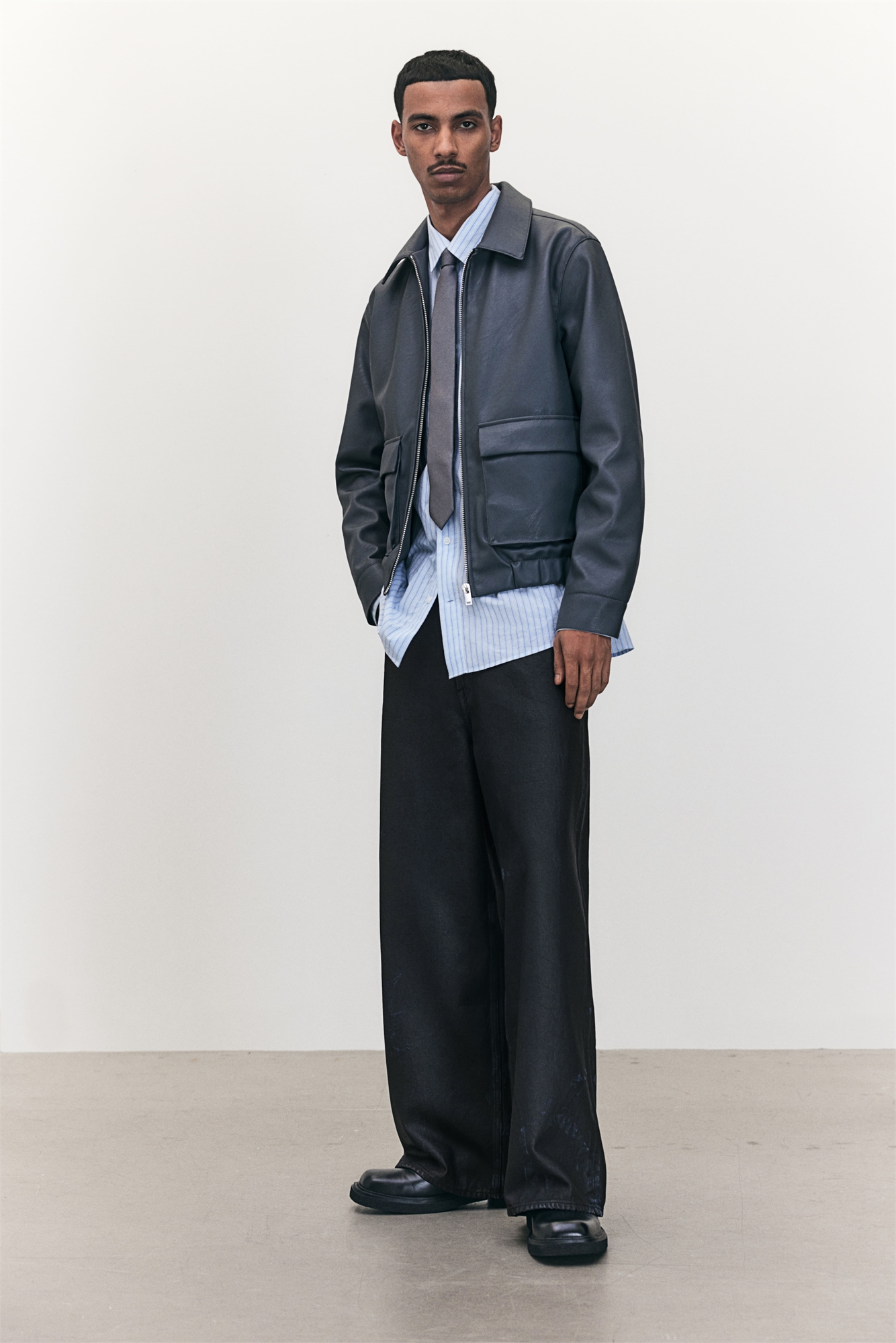 Джинсы с 5 карманами из жесткого хлопкового денима с широкой штаниной и свободным кроем от сиденья до подола, с опущенной промежностью и дополнительным пространством по всей ноге. Высокая талия, застежка на молнию и пуговицу. Предназначены для повседневной носки.