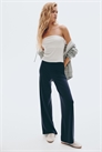 Брюки из мягкого трикотажа с высокой эластичной талией и широкими штанинами.