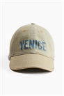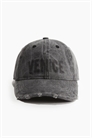 Кепка из хлопкового холста с принтом, изношенными деталями, вышитыми люверсами и регулируемой металлической пряжкой сзади. Хлопковый начес.