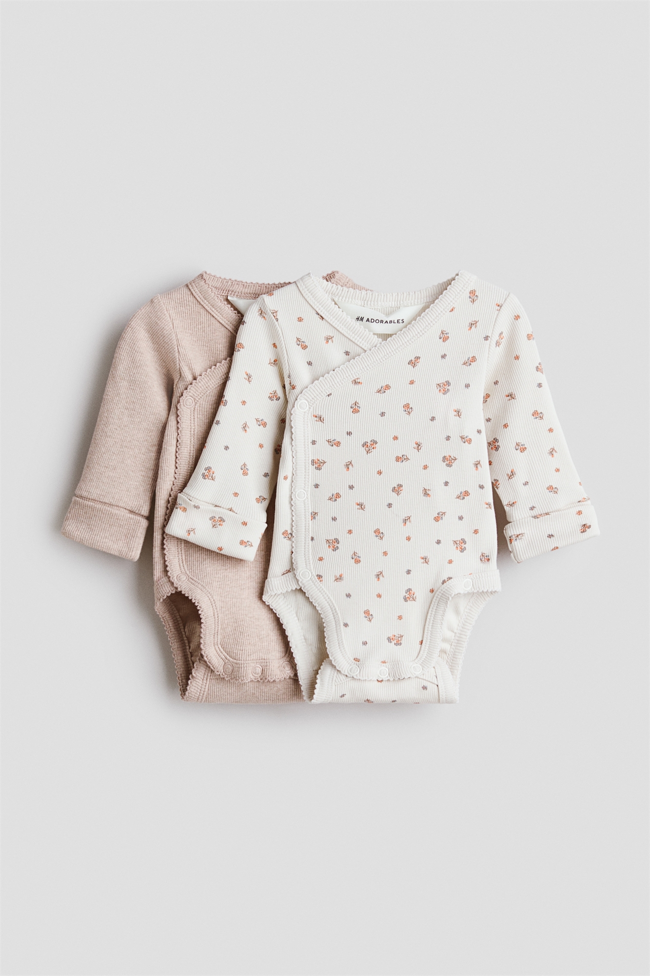 H&M Adorables. Боди из мягкого, ребристого джерси из высококачественного хлопка, рассчитанного на длительное использование. Заворачивающаяся передняя часть с застежками по бокам, удлиненные манжеты, которые можно складывать по мере роста малыша, и двойной ряд застежек внизу для регулировки размера. Наш хлопок имеет высокий показатель GSM, что означает более плотное и прочное качество без ущерба для комфорта. Коллекция H&M Adorables - это подборка качественных вещей с высоким уровнем комфорта, которые не подвластны времени.