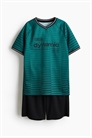 Комплект из футбольной футболки и шорт из функционального трикотажа с технологией DryMove™, которая помогает отводить влагу от кожи, обеспечивая комфортную сухость во время движения. Футболка с V-образным вырезом, короткими рукавами реглан и светоотражающими деталями спереди. Шорты с эластичным утягивающим поясом.