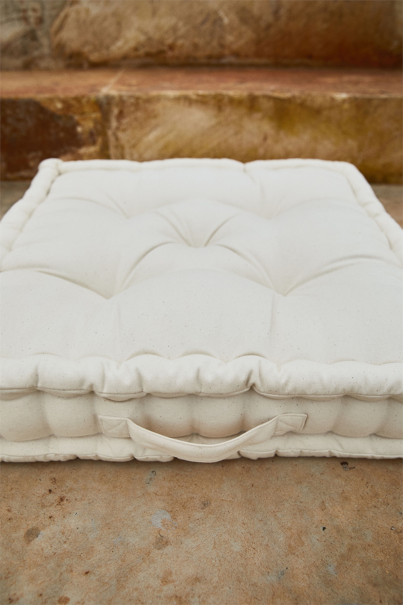 Мягкая подушка с водоотталкивающим хлопковым плетением, которую можно использовать на полу в качестве дополнительного сиденья. Практичная ручка для переноски с одной стороны. Купите одну или несколько, чтобы создать уютную зону отдыха на балконе или в саду. Храните внутри, когда не используете.