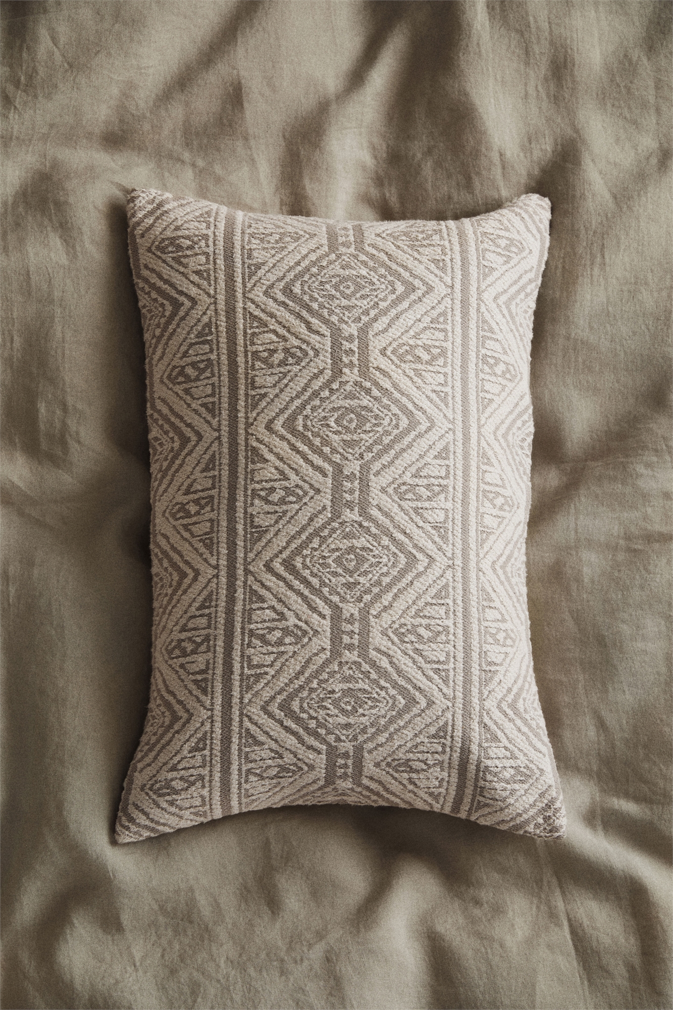 Чехол для подушки из хлопкового холста с фактурным рисунком на лицевой стороне, однотонной оборотной стороной и застежкой-молнией с одной стороны.