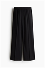 Брюки из саржи с высокой эластичной талией, фальшивой ширинкой и неброскими боковыми карманами. Широкие штанины с застроченными складками спереди и вдавленными складками сзади.