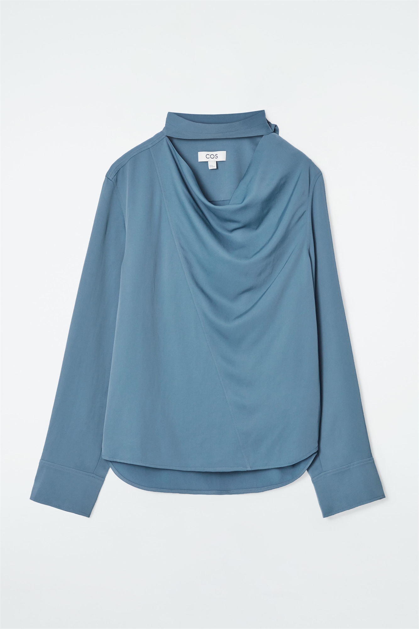 Эта стально-голубая блузка с вырезом-шарфом, который можно закрепить на плече для непринужденного образа. Диагональная передняя панель и мягкий блеск ткани усиливают драпировку непринужденного силуэта. Свободный крой Застежка на пуговицы Ацетат целлюлозы NAIA™ - это полностью отслеживаемое ацетатное волокно, изготовленное из древесной массы, полученной из экологически чистых источников, с использованием процесса с меньшим воздействием на окружающую среду Ткань: 77% вискозы, 23% ацетата целлюлозы NAIA™. Без учета отделки / Машинная стирка Длина по спинке для размера EU 36 составляет 65 см / Модель носит размер EU 36