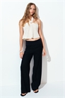 Брюки с воздушным плетением из смеси льна и вискозы. Низкая эластичная талия с откидным поясом из трикотажа и широкие штанины.