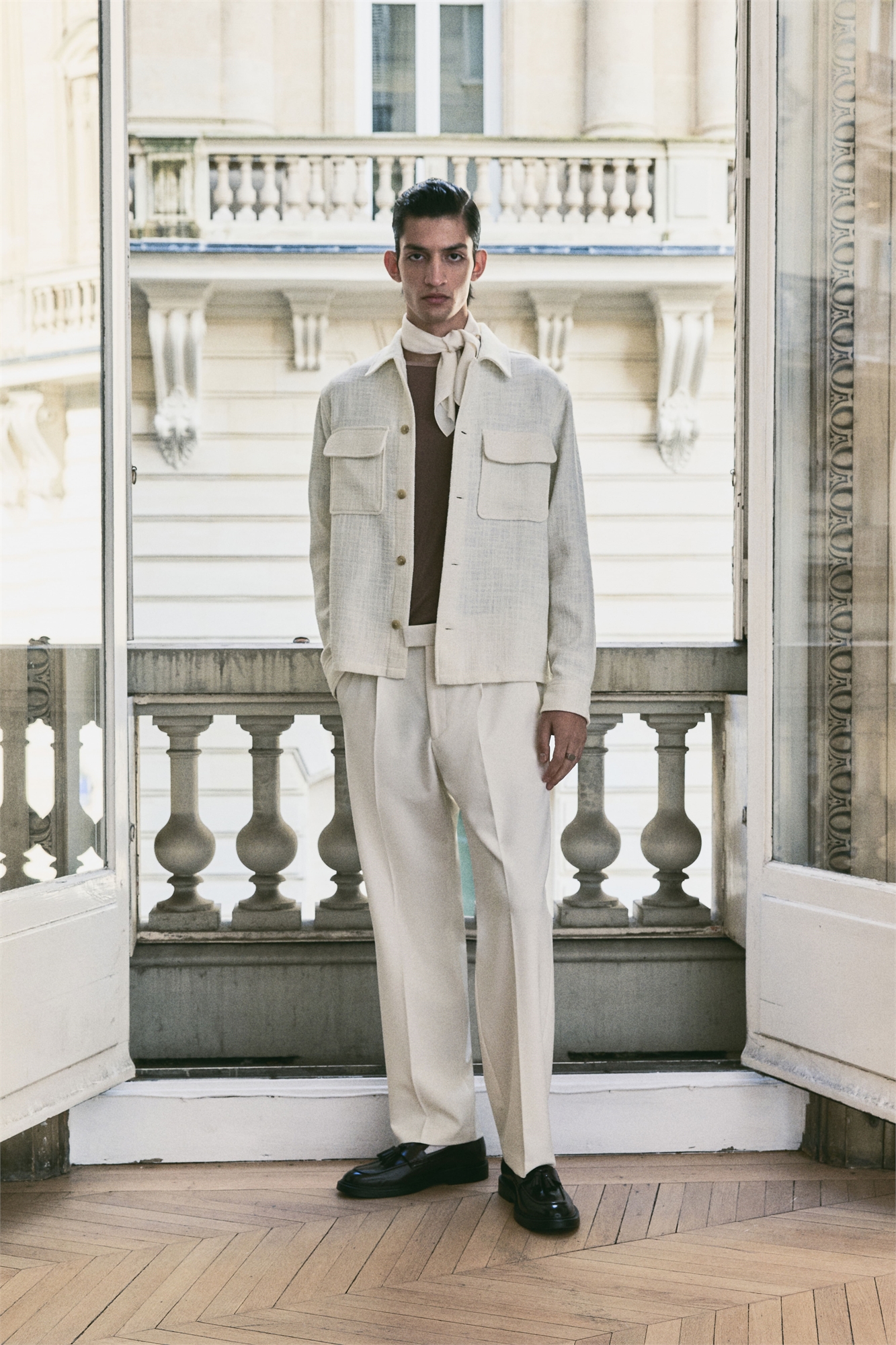 Рубашка в стиле оверсайз из фактурного плетения с отложным воротником, французским передом, ярмом сзади, накладными нагрудными карманами и длинными рукавами с пуговицей и разрезом на манжетах. Подол прямого кроя. Регулярный крой для комфортной носки и классического силуэта.