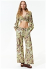 Брюки из тканого материала с эластичным покрытием и шнурком с бусинами на талии. Небрежные боковые карманы и широкие ноги.