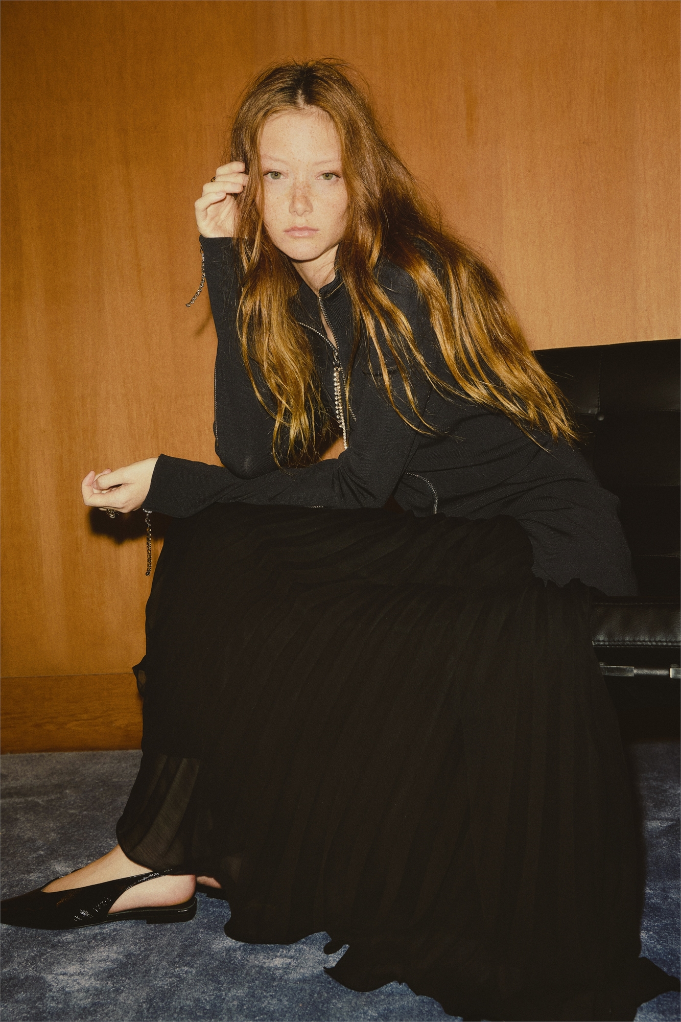 Свободная юбка длиной до щиколоток из плиссированного полотна с высокой талией и узким эластичным поясом. Асимметричный подол с оверлоком. На подкладке.