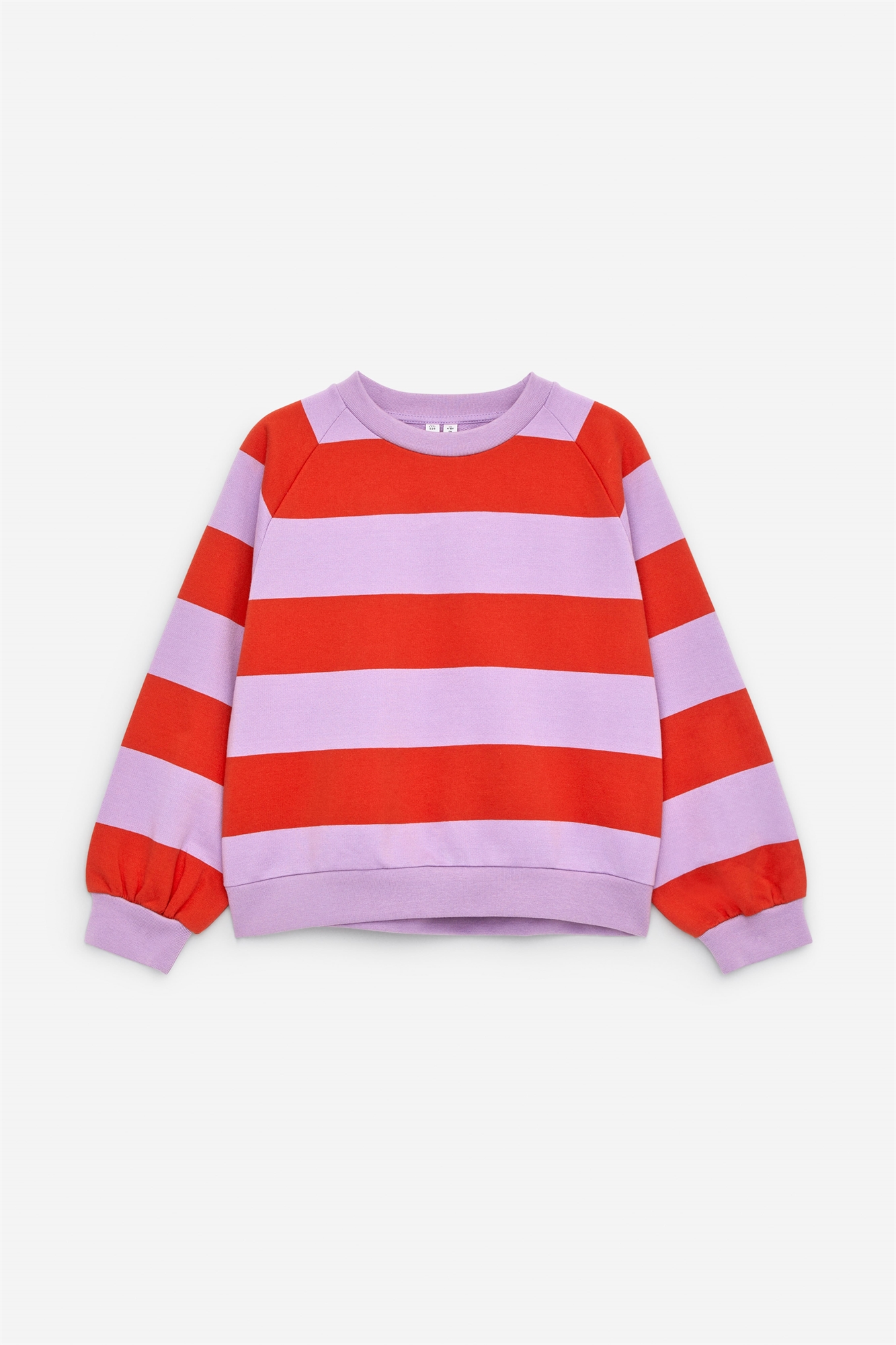 Толстовка с приталенным, слегка завышенным фасоном из мягкой хлопковой махры. Рукава реглан и ребристая отделка.